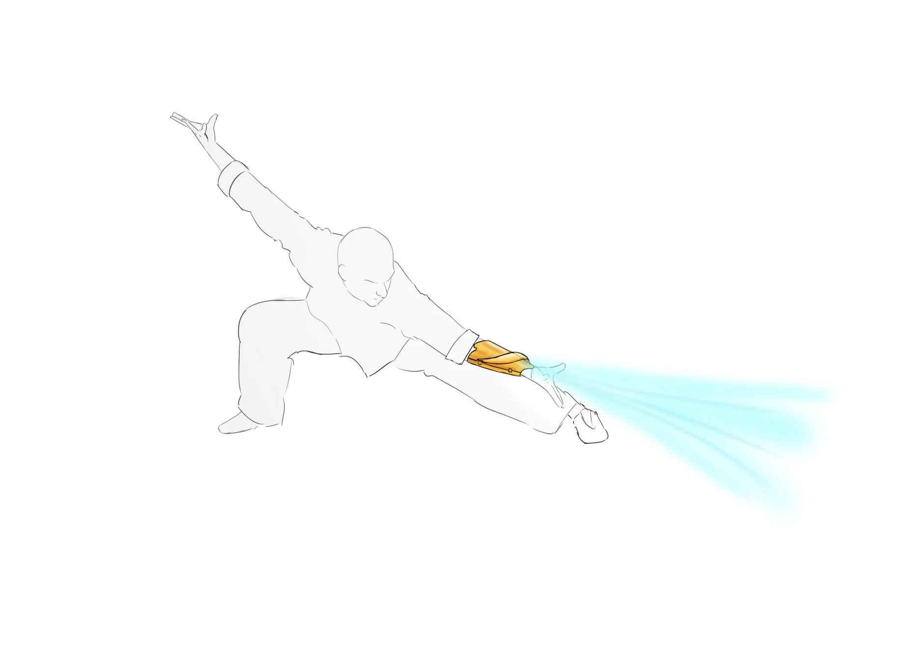 This led to a design that was flowy in nature to emulate air. It needed to flow out from the wearer’s limbs, in this case arm.